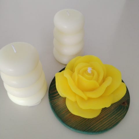 Kaunis suuri ruusukynttilä lasisella alustalla