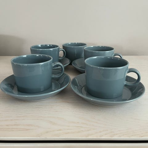 Tässä kohteessa myydään kuusi (6) kappaletta sinimustia Teema-sarjan kahvikuppeja lautasineen. Pienempi koko.