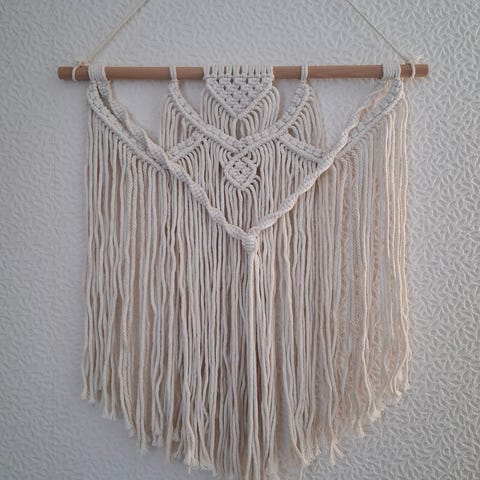Uusi makramee seinävaate. Koko 40x75cm. Väri luonnonvalkoinen/vaalean beige.