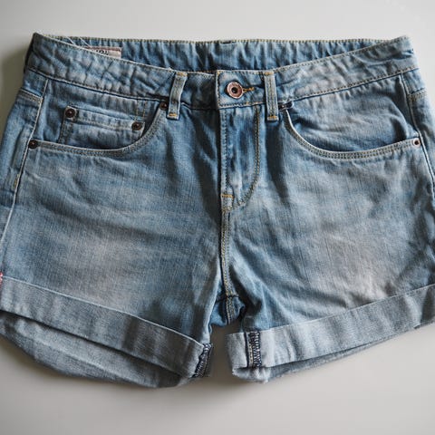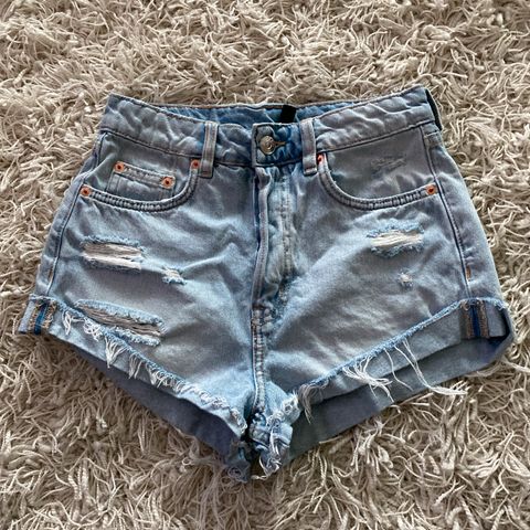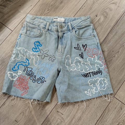 Vaaleansiniset farkkushortsit.