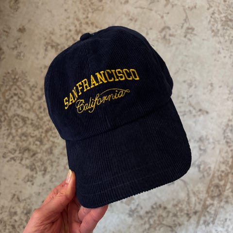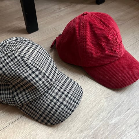 Siisti samettilippis, edessä kahdet koristenapit.