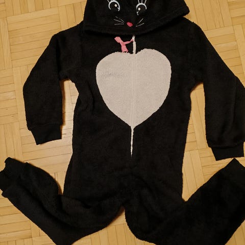 Kuvan mukainen musta/Valko kissa haalari pehmeää "karvaa"