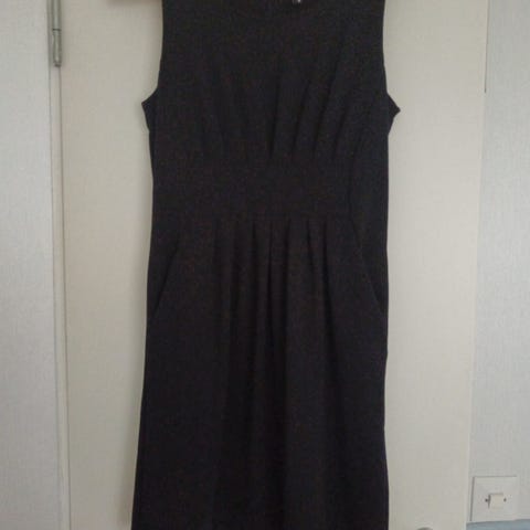 Musta kotelomekko, pituus olalta helmaan 96 cm, takana vetoketju.