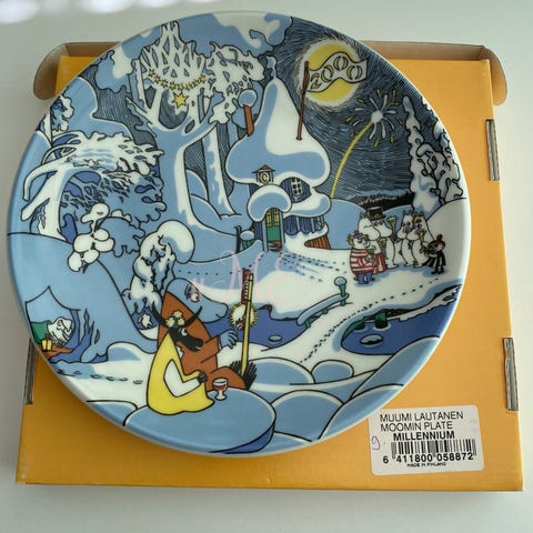 Käyttämätön Millenium-lautanen. Kuvissa näkyy heijastumia johtuen valosta.
