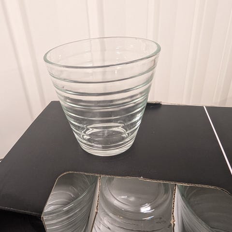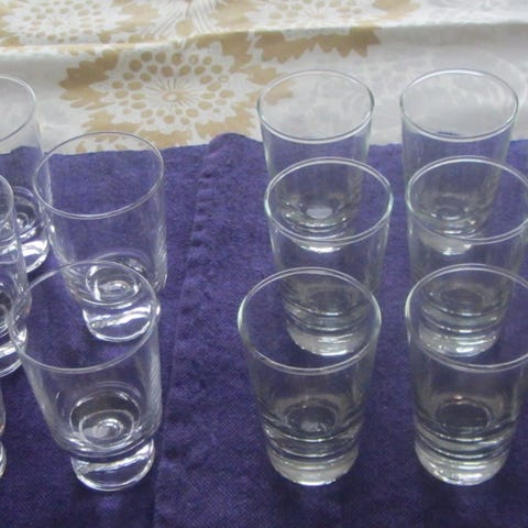 Pieniä korkeus 7cm ja halkaisija 4cm ”korvallisia” laseja. Olleet yksissä juhlissa käytössä. Laseissa kaunis kohokuviointi. 75 kpl yhtä 30€.