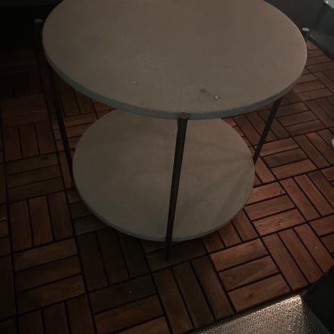 Muuton tieltä pois pöytä. Pöytätaso ja jalat metallia.