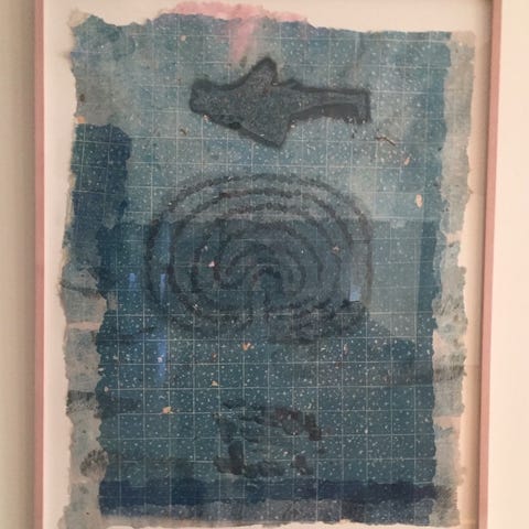 Carita Berg "Tuhkimo sarja 3" 1/5 vedos siirretyt pigmentit ja vaha, mitat kehysten päältä korkeus n.55,5cm leveys n.55,5cm kuva-ala n.26,5x26,5cm, vanhat kehykset