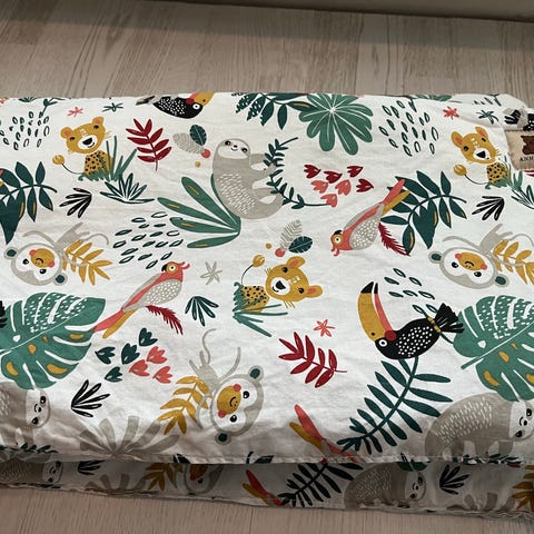 Reunapehmusteen pituus on 360 cm, joten se ylettyy hyvin 120 x 60 cm pinnasänkyjen ympäri.