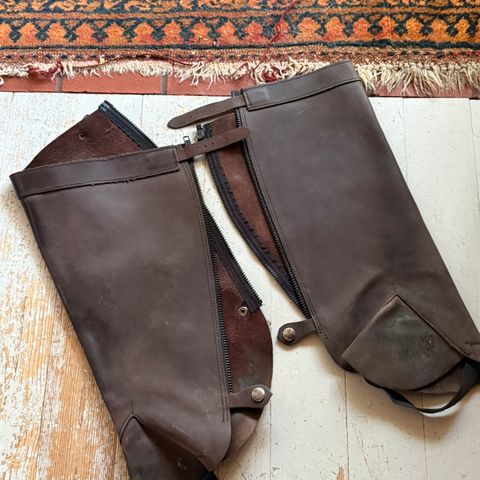 Chapsit nahkaa, olleet lapsella käytössä. Jonkin verran käytön jälkeä mutta hyvässä kunnossa.