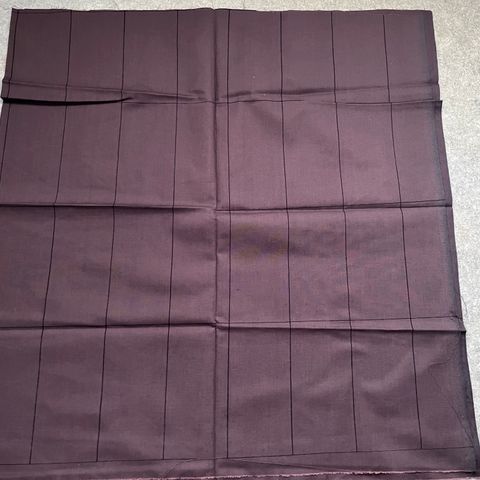 Marimekko retro kangaspala, vuodelta 1981. Tummanruskea, mustilla kapeilla raidoilla. Vaakaviiva VII, suunnittelija Fujivo Ishimoto.