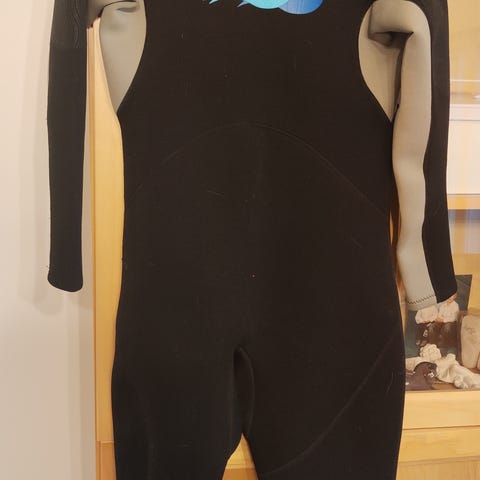 Kevyt märkäpuku, sukat ja käsineet.