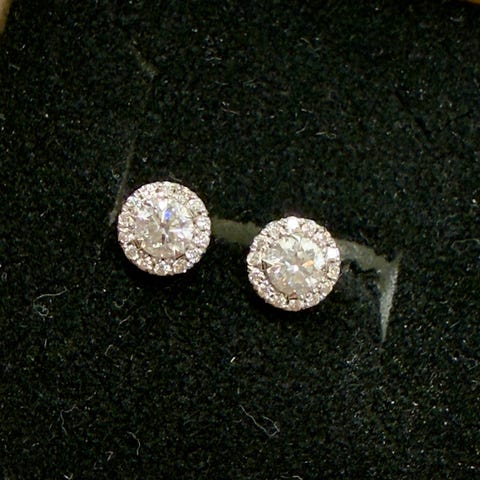 Myydään pienet timantti korvakorut, valkokulta, leimat 585 ja 14k.