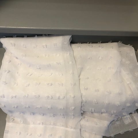 Myynnissä kauniit DKNY:n läpikuultavat verhot. Mitat noin 123 x 142 cm. Väri neutraali ja kuosi hillitty, sopii monenlaiseen sisustukseen.
