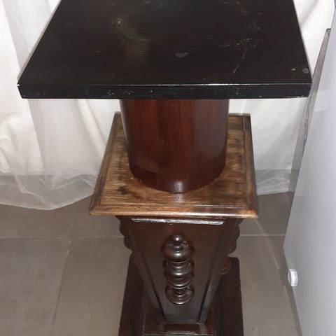 Antiikkinen kukkapylväs. Korkeus 78 cm ja jalan halkaisija 36 cm. Kauniisti sorvattu koristeellinen jalkaosa. Tukeva.