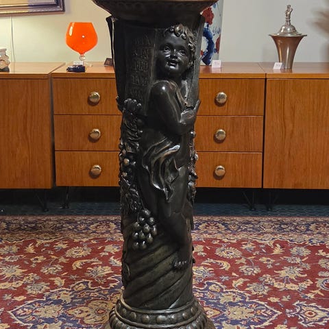 Hyväkuntoinen antiikki kukkapylväs. Korkeus 78 cm ja jalan halkaisija 36 cm. Kauniisti sorvattu koristeellinen jalkaosa. Tukeva.