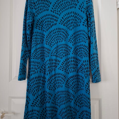 Marimekon todella hyväkuntoinen trikoomekko Ludzia/krinni. Kai-kai 54cm, pituus 97cm, vyötärö 102 cm, lantio 114 cm. Koko M.