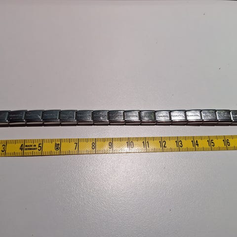 Myydään Nomination perusranneke, 19 palaa sekä 4 lisäpalaa. Kuvassa olevan rannekorun pituus on noin 18 cm. Ranneke on valmistettu teräksestä. Mukana on 6 kpl koriste-elementtejä, esim. tähti- ja kissalisäosat.