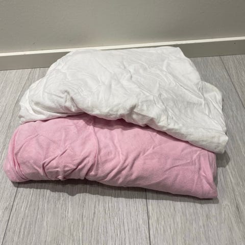 Aluslakana koko 80x130 ja toinen (paljon käytetty, on pieni reikä, katso kuva) 80x165.