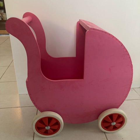 -Ihastuttava klassinen työntövaunu, johon nukkevauvan voi laittaa kyytiin nukkumaan.