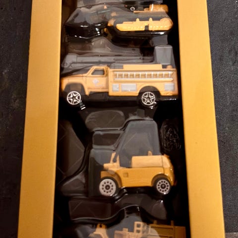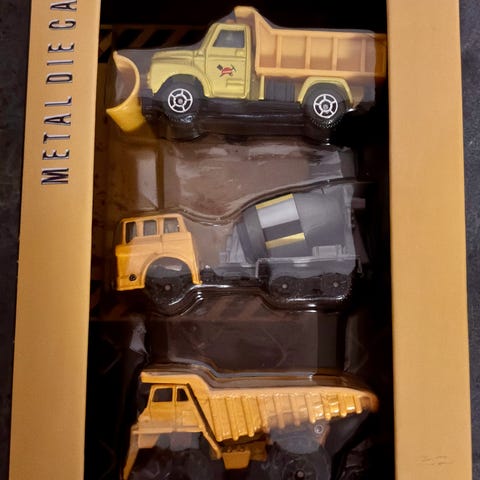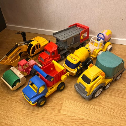 Lelusarja, joka sisältää useita rakennuskoneiden pienoismalleja. Koneet on valmistettu muovista ja ne ovat eri värejä. Sopii leikkeihin ja keräilyyn.