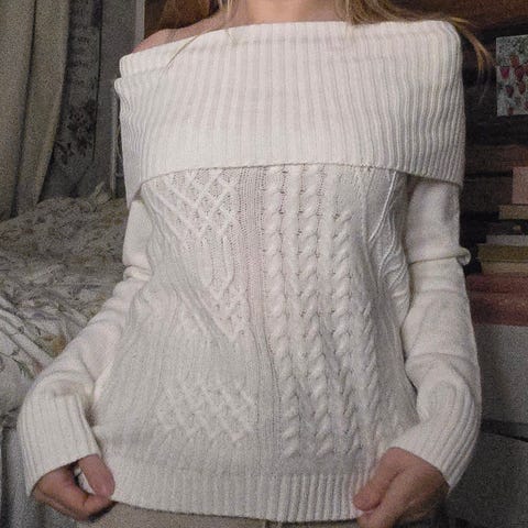 Kelta/ruskea ohut neule, kirjailluin kukkakuvioin,lyhyt malli ( vyötärö) koko: ehkä M