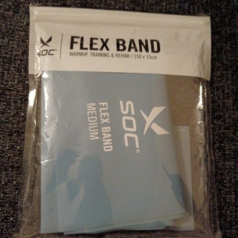 Joustava kuntoilu- / kuntoutusväline ainakin olkapään tai kiertäjäkalvosimen harjoittamiseen
