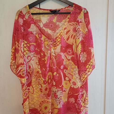 Myydään kaunis naisten kukallinen pusero.. Helmassa kuminauha. Mitat Kainalosta-kainaloon 49cm ja olkapäästä helmaan 60cm
