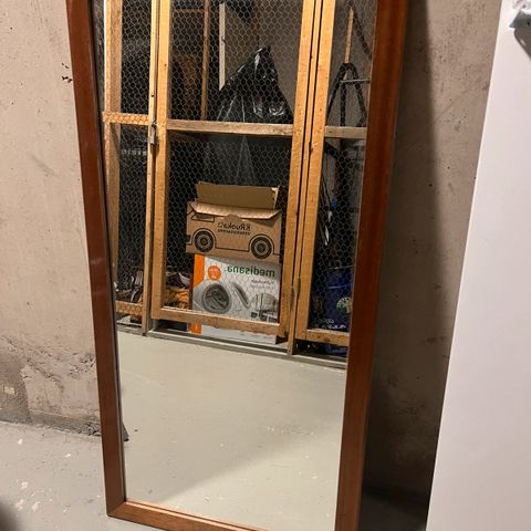 Kunto: Hyvä. Peilipinta siisti ja ehjä, kehyksen takana jälkiä seinään kiinnityksestä.