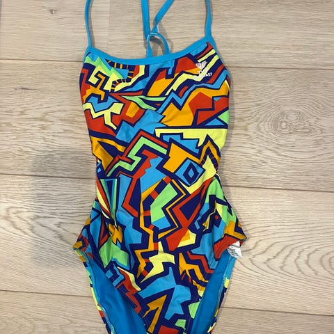 Uusi, käyttämätön naisten uimapuku. Vain kerran kokeiltu, haarateippi paikoillaan. Irroitettavat toppaukset. Nauhalla selkäpuolelle kiinnitys. Crivit merkin.