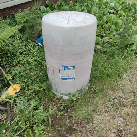 Myydään kuvan ehjä 200L vesitynnyri, ei kantta.
