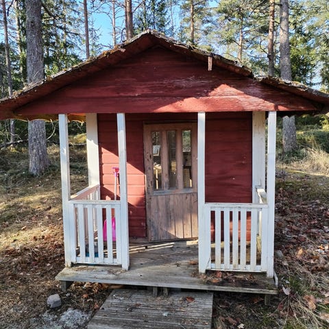 Muovinen lelu navetta. Katon saa avattua niin että muuntuu pulpetiksi. Nouto Mynämäki.