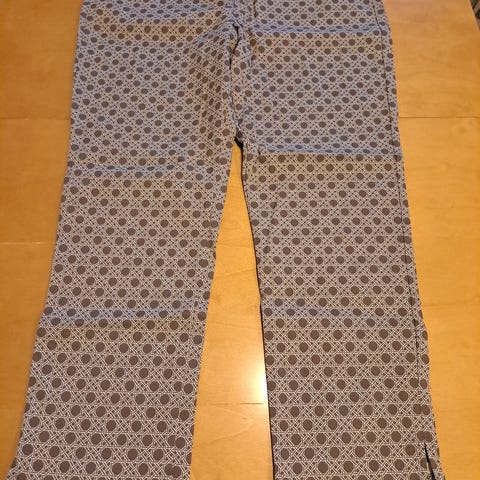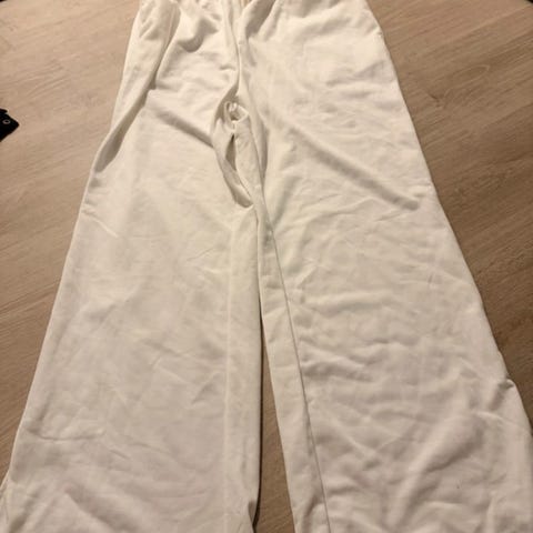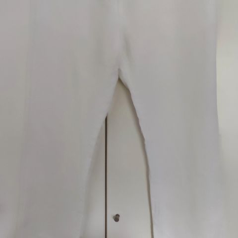 Valkoiset housut,Chanelle, 44. Vasemmassa takalahkeesss pari läikkää, jotka lähtevät Sappi saippualla. Huomioitu hinnassa. Puuvillaa 98% ja elastaania 2%.