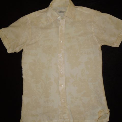 Valkoinen lyhythihainen kauluspaita vaalensinisillä raidoilla.