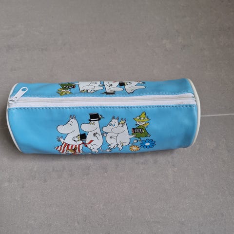 Hyvässä kunnossa oleva 90-luvun muumipenaali. Pientä tahraa sisäpuolella, näyttäisi lyijykynän jäljiltä joten mahdollisesti lähtevät helposti pyyhkimällä. Vetoketju toimii moitteettomasti.