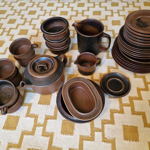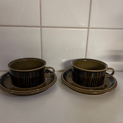 Myydään Arabian Ruska kahvikupit ja lautaset, 10 kpl. Ehjiä ja hyväkuntoisia. Kahvikupin vetoisuus 1 dl.
