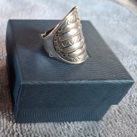 Myydään Kalevala Perniö sormus,paino 8 g,l 2,7 cm,koko 18,säädettävä.Pronssi.