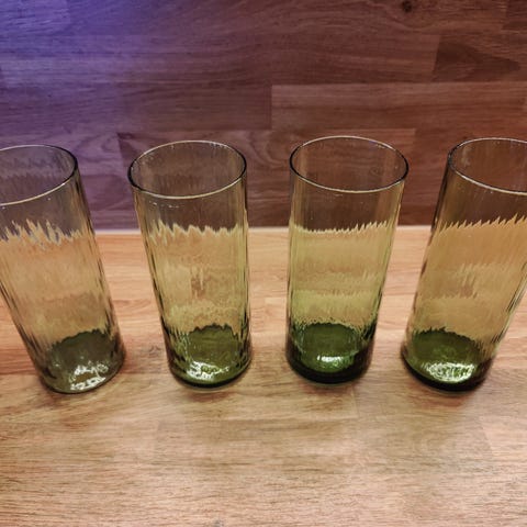 Riihimäen lasi, Nanny Still, Flindari juomalaseja 13kpl, mittoja korkeus n.16cm halkasija n.5,5cm (yksi lasi vihreä)