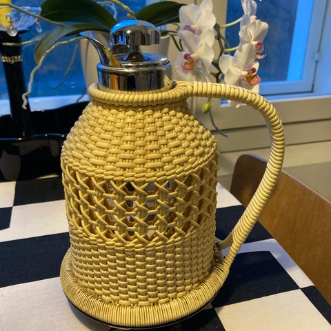 Myydään kuvanmukainen retro Polaris Fabrikker Norway stainless steel sanko. Korkeus n. 25,5 cm ja h. n. 31,5 ja 20,5 cm.