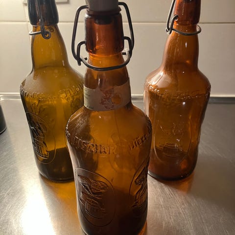 Patenttikorkkipulloja 7kpl (yhden korkissa lukee Porin oluttehdas etiketti Rajamäen etikkaa)