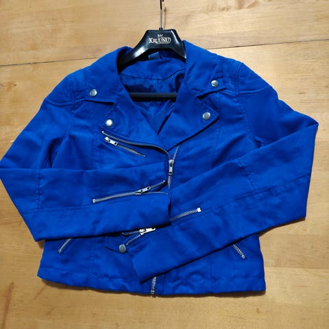 H&M sininen siisti takki, koko 42. Kuvissa väri ei oikeuksissaan, on tasaisen sininen kauttaaltaan. Hyvässä kunnossa, takana vekki.