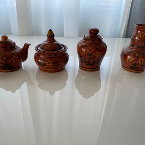 pieniä käsintehtyjä savikuppeja, joita yhdistää koristeellinen kahva. Sopivat hyvin sisustukseen, tarjoiluun (esim. sormisuolalle, kastikkeelle) tai lahjaksi.