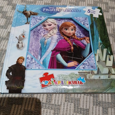 Frozen palapelikirja, lähes uudenveroinen kunto, pari kertaa vain luettu ja rakennettu palapelit.