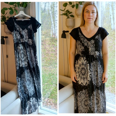 Harmaa mekko koko L. Joustavas kangasta, kai-kai venyttämättä 47cm.