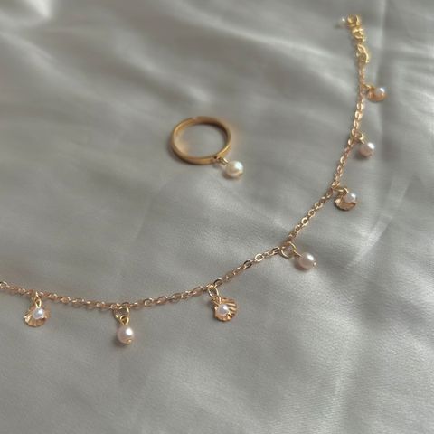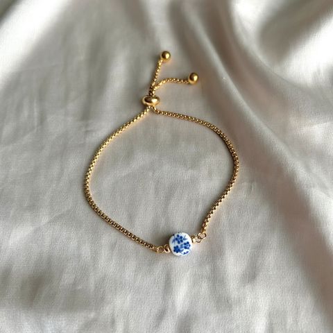 Käsintehty rannekoru lasihelmillä. Saatavilla sekä hopeisena että kultaisena.