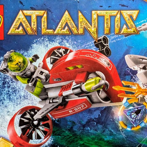 Hyväkuntoinen vuonna 2010 julkaistu Lego Atlantis setti. Kaikki osat tallella ja hyvässä kunnossa. Ohjeet löytyvät lego.com