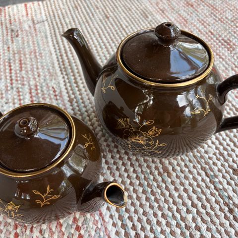Vanhat Arabian teekupit ja lautaset (2 kpl) piippuleimalla. Toisen kupin reunassa pieni särö.