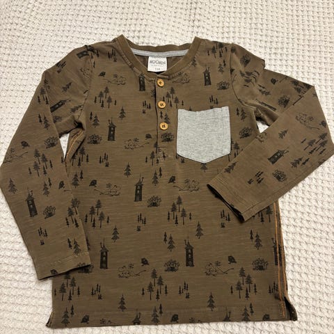 Meillä unohtui kaappiin. Uudenveroinen, säilytyksestä vain ryppyinen, Muumi -paita. Myynnissä myös samanlainen kokoa 120. Postitus onnistuu.