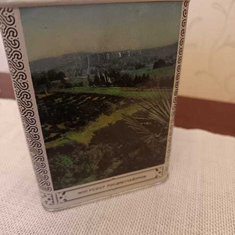 Vintage, Georgialainen tee metallirasia venäjänkielisellä tekstillä