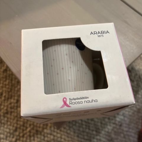 Myydään tarrallinen käyttämätön Roosanauha vaaleanpunainen Mainio muki.
