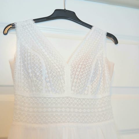 Myydään uusi/käyttämätön, valkoinen, todellinen unelmaluomus bling bling hääpuku. Koko 34. Hihaton mekko, selästä avoin, levenevä hameosa, ylellistä kerroksellista paljettiaplikointia jotka hohtavat hillitysti. Koristelu tekee mekosta fantastisen runsaan. Kiinteä alusmekko on kauttaaltaan joustavaa ja pehmeää trikoota. Selässä piilovetoketju. Mekon pituus n.150cm, kainalo-kainalo n.40cm, vyötärö n.32cm. Tässä ihanassa mekossa tulet varmasti huomatuksi! Savuttomasta kodista. Postikulut 11euroa. Yhdistelen postikuluja. En käytä ToriDiiliä.